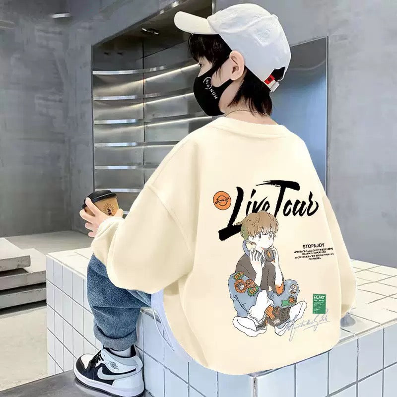 Boys academic cream sweatshirt with live tour back graphic
